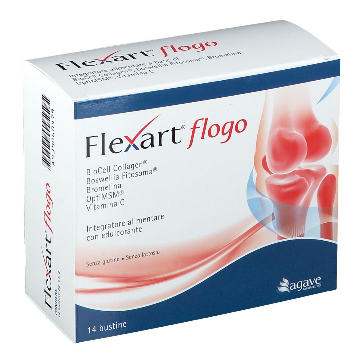OptiMSM (Metilsulfonilmetano), maltodestrina, Biocell Collagen (Collagene idrolizzato titolato al 10% in acido ialuronico e 20% in Condroitin solfato), Bromelina da gambo di ananas [Ananas comosus (L.) Merr., maltodestrine] 2.400 GDU/g; acidificante: acido citrico; Boswellia Fitosoma (Boswellia Serrata Roxb. Ex Colebr. gommoresina estratto secco, agente di rivestimento: lecitina di soia), aroma, Vitamina C (acido L-ascorbico), agente antiagglomerante: biossido di silicio; coloranti: betacarotene, curcumina; edulcorante: sucralosio.