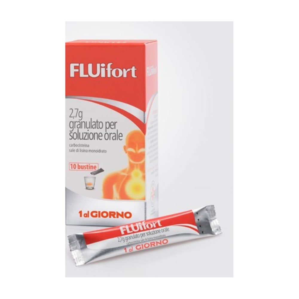 Fluifort 10 Bustine Granulato 2,7 g è un farmaco mucolitico e fluidificante del catarro che si usa per la tosse grassa e per il catarro nelle orecchie.