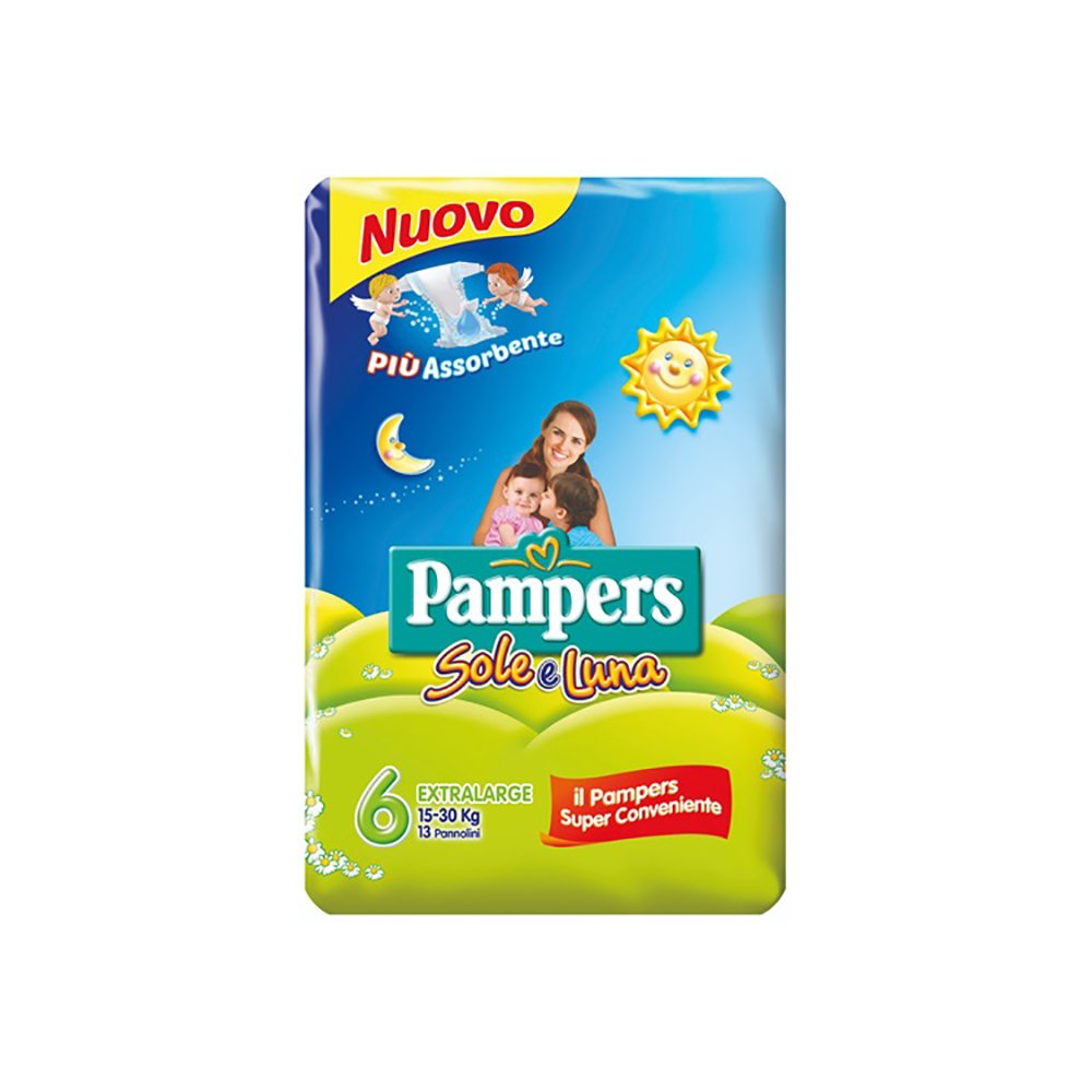 Pampers Sole e Luna XL, 13 Pannolini, Taglia 6 (15-30 kg).