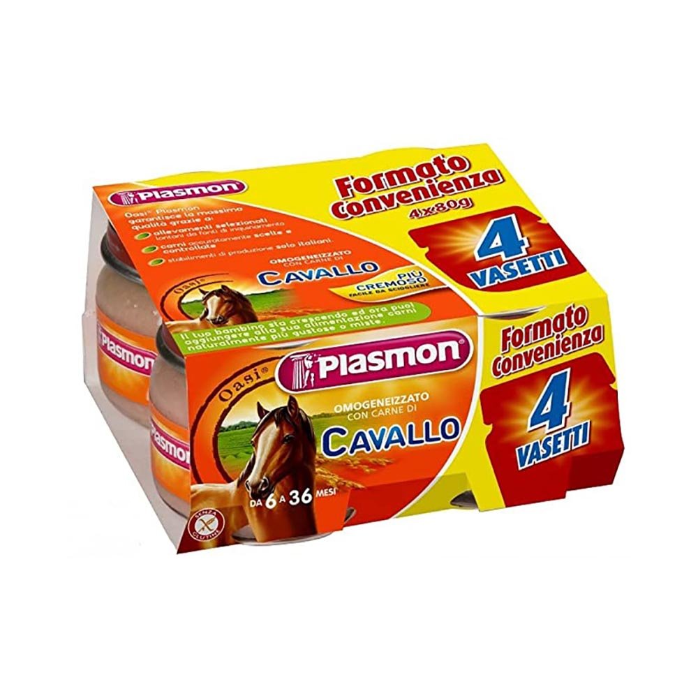 Omogeneizzato indicato dal 6° mese, salvo diversa indicazione del Pediatra.L’omogeneizzato di carne cavallo ha un gusto saporito, ideale per variarel’alimentazione del tuo bambino. La carne è un alimento importantenell’alimentazione dei bambini. Gli omogeneizzati con carne Plasmon sono studiati perfornire al bambino proteine ad elevato valore biologico provenienti esclusivamente dallacarne. La carne è cotta a vapore e questo permette di mantenere al meglio leproprietà nutrizionali dell’alimento. Non contiene coloranti e conservanti,come per legge. Senza sale aggiunto.
