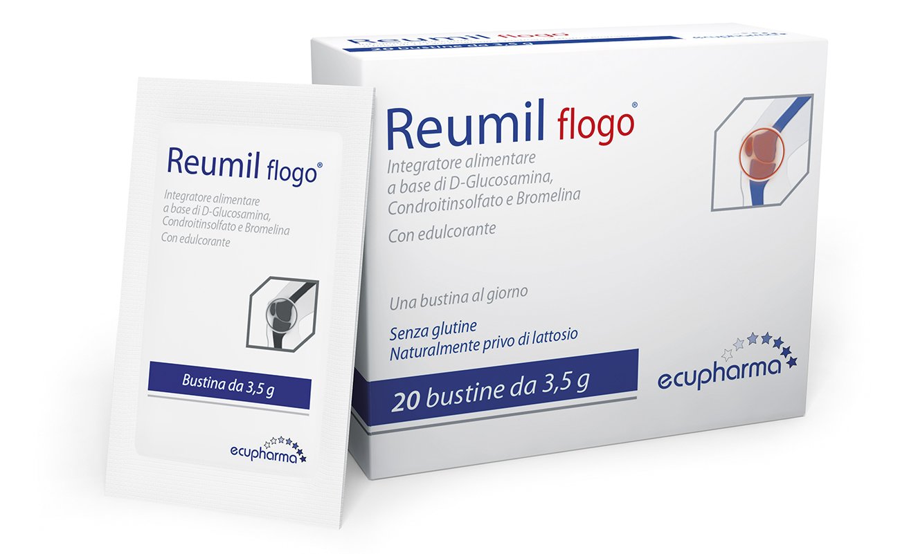 Reumil Flogo è un integratore alimentare a base di Glucosamina, Condroitin solfato e Bromelina, utili per mantenere le naturali difese del sistema osteoarticolare nei casi di carenza o aumentato fabbisogno di tali nutrienti.