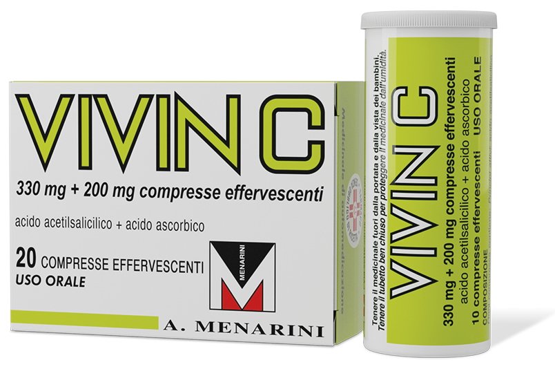 Questo medicinale non deve essere utilizzato nei bambini e nei ragazzi di età inferiore a 16 anni (vedere paragrafo 4.3).Casi di sindrome di Reye sono stati osservati in bambini affetti da infezioni virali (in particolare varicella e condizioni simil-influenzali) e trattati con acido acetilsalicilico. La sindrome di Reye è una malattia molto rara, ma pericolosa per la vita, che richiede un immediato intervento medico. Si manifesta con vomito persistente e segni di danno progressivo del sistema nervoso centrale (torpore, fino alla comparsa di convulsioni generalizzate e coma), segni di lesione epatica e ipoglicemia. Deficit di G6PD, alte dosi di acido acetilsalicilico possono causare emolisi. In caso di deficit di G6PD, l’acido acetilsalicilico deve essere somministrato solo sotto supervisione medica. Anziani: i pazienti anziani hanno un aumento della frequenza di reazioni avverse ai FANS, specialmente emorragie e perforazioni gastrointestinali, che possono essere fatali. Questi pazienti devono iniziare il trattamento con la più bassa dose disponibile (vedere paragrafo 4.2). I soggetti di età superiore ai 70 anni di età, soprattutto in presenza di terapie concomitanti, devono usare questo medicinale solo dopo aver consultato un medico. Morbo di Crohn, colite ulcerosa: l’acido acetilsalicilico, come i FANS in generale, costituisce un fattore di rischio per la recidiva clinica della malattia, può favorire la comparsa di complicanze diverticolari quali perforazione, fistolizzazione e ascessi. È consigliabile che venga consultato il medico da parte dei pazienti con disturbi gastrici ed intestinali o ridotta funzionalità renale (da lieve a moderata). L’uso di VIVIN C deve essere evitato in concomitanza di FANS, inclusi gli inibitori selettivi della COX-2. Gli effetti indesiderati possono essere minimizzati con l’uso della dose minima efficace per la durata di trattamento più breve possibile che occorre per controllare i sintomi. Emorragia gastrointestinale, ulcerazione e perforazione: durante il trattamento con tutti i FANS, in qualsiasi momento, con o senza sintomi di preavviso o precedente storia di gravi eventi gastrointestinali, sono state segnalate emorragia gastrointestinale, ulcerazione e perforazione, che possono essere fatali. Negli anziani e in pazienti con storia di ulcera, soprattutto se complicata da emorragia o perforazione (vedere paragrafo 4.3), il rischio di emorragia gastrointestinale, ulcerazione o perforazione è più alto con dosi aumentate di FANS. Pazienti in trattamento con VIVIN C devono riferire qualsiasi sintomo gastrointestinale inusuale (soprattutto emorragia gastrointestinale) in particolare nelle fasi iniziali del trattamento. Quando si verifica emorragia o ulcerazione gastrointestinale in pazienti che assumono VIVIN C il trattamento deve essere interrotto e non più ripreso senza consultare il medico. L’acido acetilsalicilico e gli altri FANS possono causare reazioni di ipersensibilità (compresi attacchi d’asma, rinite, angioedema o orticaria). Nei soggetti con asma e/o rinite (con o senza poliposi nasale) e/o orticaria le reazioni possono essere più frequenti e gravi. L’acido acetilsalicilico modifica l’uricemia (nella dose analgesica l’acido acetilsalicilico aumenta l’uricemia inibendo l’escrezione di acido urico, alle dosi utilizzate in reumatologia, l’acido acetilsalicilico ha un effetto uricosurico). Si deve usare cautela nei pazienti che assumono farmaci concomitanti che potrebbero aumentare il rischio di ulcerazione o emorragia, come corticosteroidi orali, anticoagulanti inibitori selettivi del reuptake della serotonina (SSRI) o agenti antiaggreganti come l’aspirina (acido acetilsalicilico da 50 mg a 375 mg al giorno). Eparine a basso peso molecolare ed eparine frazionate (vedere paragrafo 4.5). Nei pazienti diabetici, in trattamento con ad es solfoniluree, i salicilici possono aumentare l’effetto ipoglicemizzante delle sulfoniluree. (vedere paragrafo 4.5). Occorre cautela nei pazienti con una storia di ipertensione e/o insufficienza cardiaca poiché, in associazione alla terapia con acido acetilsalicilico, così come con gli altri FANS, sono state segnalate ritenzione idrica ed edema. Il rischio è maggiore nei soggetti in trattamento con diuretici. Il medicinale è controindicato nell’ insufficienza renale, cardiaca o epatica gravi (vedere paragrafo 4.3). Il contenuto di sodio per compressa effervescente (485 mg) deve essere tenuto in considerazione nel caso di una dieta iposodica/povera di sale in pazienti con scompenso cardiaco, pressione alta e insufficienza renale. Gravi reazioni cutanee alcune delle quali fatali, incluse dermatite esfoliativa, sindrome di Stevens-Johnson e necrolisi tossica epidermica, sono state segnalate molto raramente in associazione con l’uso dei FANS (vedere paragrafo 4.8). Nelle prime fasi della terapia i pazienti sembrano essere a più alto rischio: l’insorgenza della reazione si verifica nella maggior parte dei casi entro il primo mese di trattamento. VIVIN C deve essere interrotto alla prima comparsa di eruzione cutanea, lesioni della mucosa o qualsiasi altro segno di ipersensibilità. Chirurgia: Se si deve essere sottoposti ad un intervento chirurgico (anche di piccola entità, ad esempio estrazioni dentarie) e nei giorni precedenti si è fatto uso di acido acetilsalicilico o di un altro FANS, vi è un aumentato rischio di emorragia e occorre informarne il chirurgo per i possibili effetti sulla coagulazione. I soggetti con abitudine all’assunzione di elevate quantità di alcol sono maggiormente esposti al rischio di lesioni gastrointestinali (sanguinamenti in particolare) (vedere paragrafo 4.5). Metrorragia o menorragia: l’assunzione contemporanea di acido acetilsalicilico può aumentare il rischio di maggiore intensità e durata dell’emorragia. Gravidanza e allattamento (vedere paragrafo 4.6). Questo medicinale contiene 485 mg di sodio per compressa equivalente a 24,25%